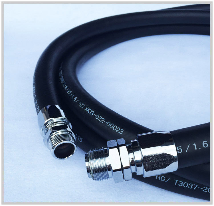 Il materiale del tubo interno del tubo idraulico ad alta pressione è realizzato in nitrile, una gomma sintetica nota per la sua eccellente resistenza ai fluidi idraulici,che lo rende ideale per l'uso in sistemi a pressione idraulicaQuesto materiale garantisce la compatibilità con la maggior parte dei fluidi idraulici, consentendo applicazioni versatili in diversi settori.